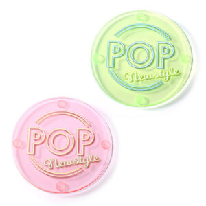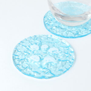 「コースター達人」では、定番のクリアタイプに加え、ネオンのように輝く蛍光タイプ、角度で色が変化してみえるオーロラタイプ、涼しげな板カラー&水面のような凹凸感を持つ水面タイプなど、4種類のアクリルコースターをラインナップ。